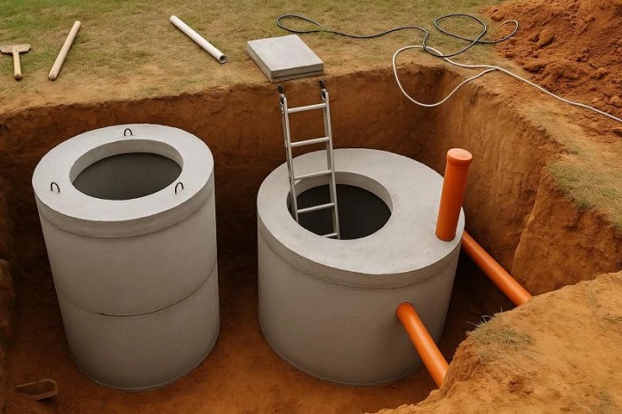 Бетонний септик не потребує складного догляду, але хоча б раз на рік варто перевіряти рівень осаду. Якщо він перевищує половину першої камери, це створює надмірне навантаження на дно й стінки.